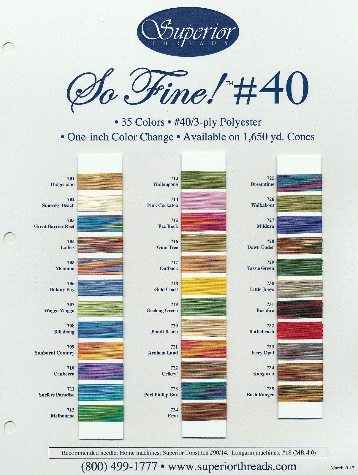 Colour Card showing 40wt  thread with 1" change.